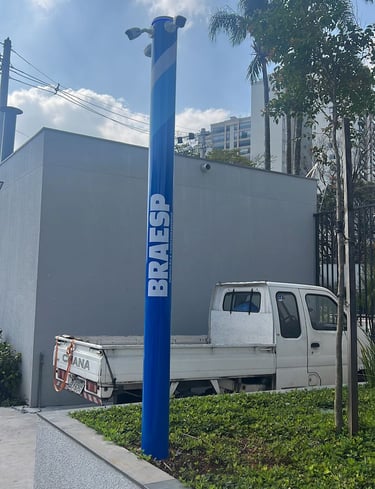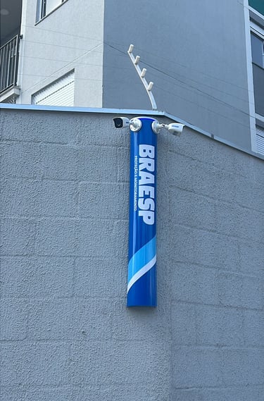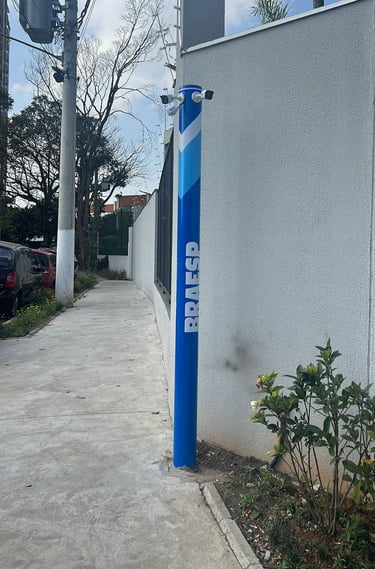 Segurança ampliada para o condomínio: realizamos a instalação de postes de monitoramento da Braesp, oferecendo aos moradores acesso direto às câmeras em tempo real.