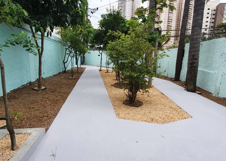 Em parceria com a construtora, realizamos a adequação das lixeiras: elas foram realocadas da entrada do condomínio para o depósito de lixo, agora acessado por janelas. Isso facilitou o descarte e melhorou o visual do condomínio.
