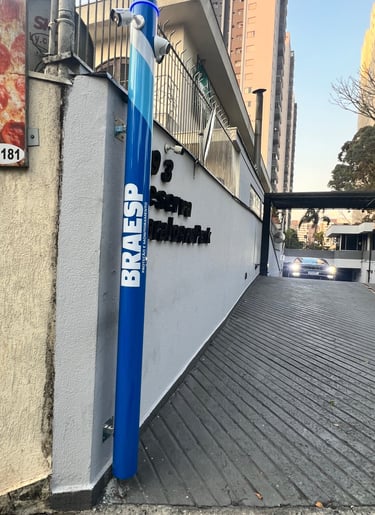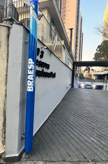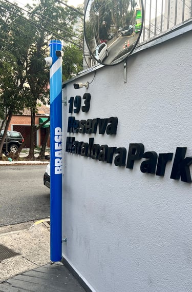 Segurança ampliada para o condomínio: realizamos a instalação de postes de monitoramento da Braesp, oferecendo aos moradores acesso direto às câmeras em tempo real.